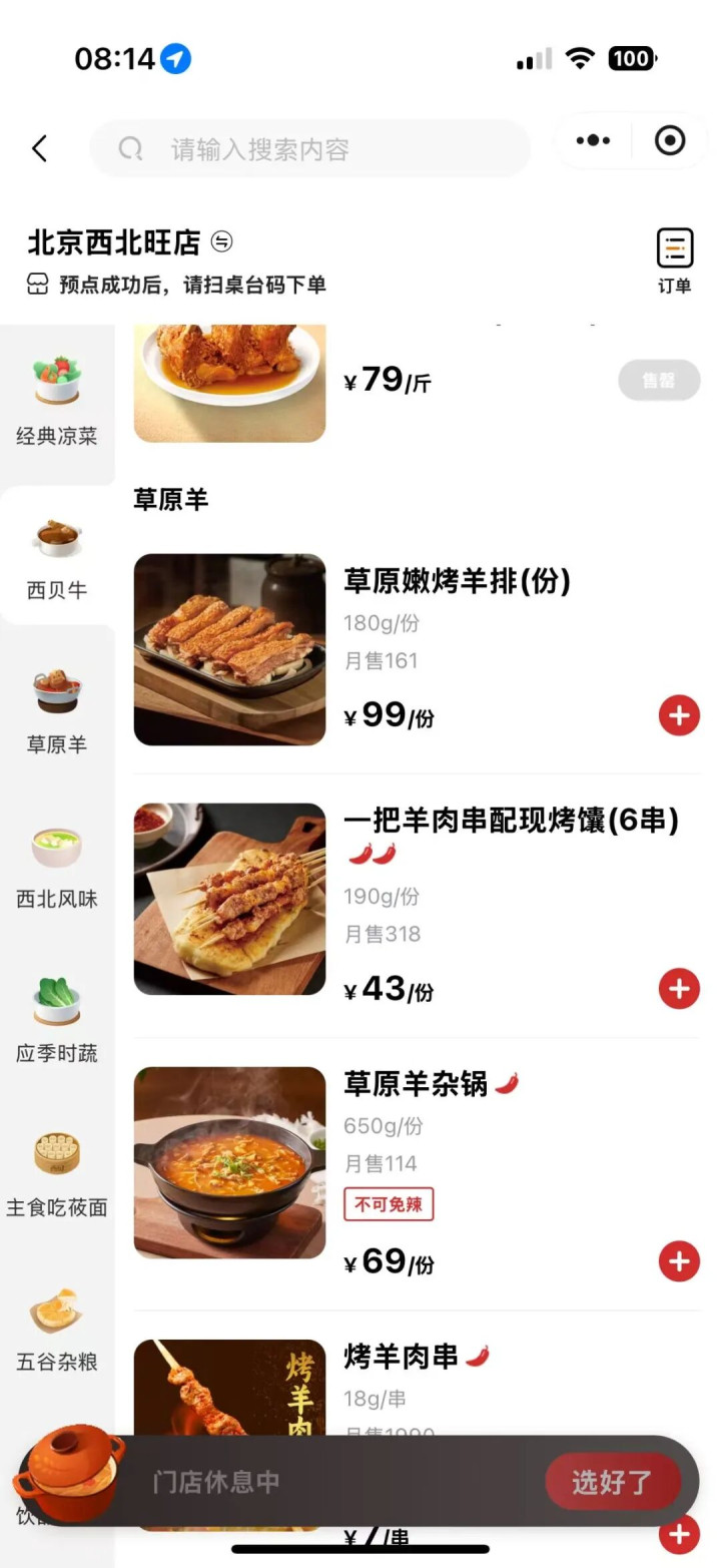 9月27日,《每日经济新闻》现场探访一家西贝门店时发现,西贝厨房里有厨师正在现场制作羊肉串,烤羊排也是羊排送到门店现煮、现烤。